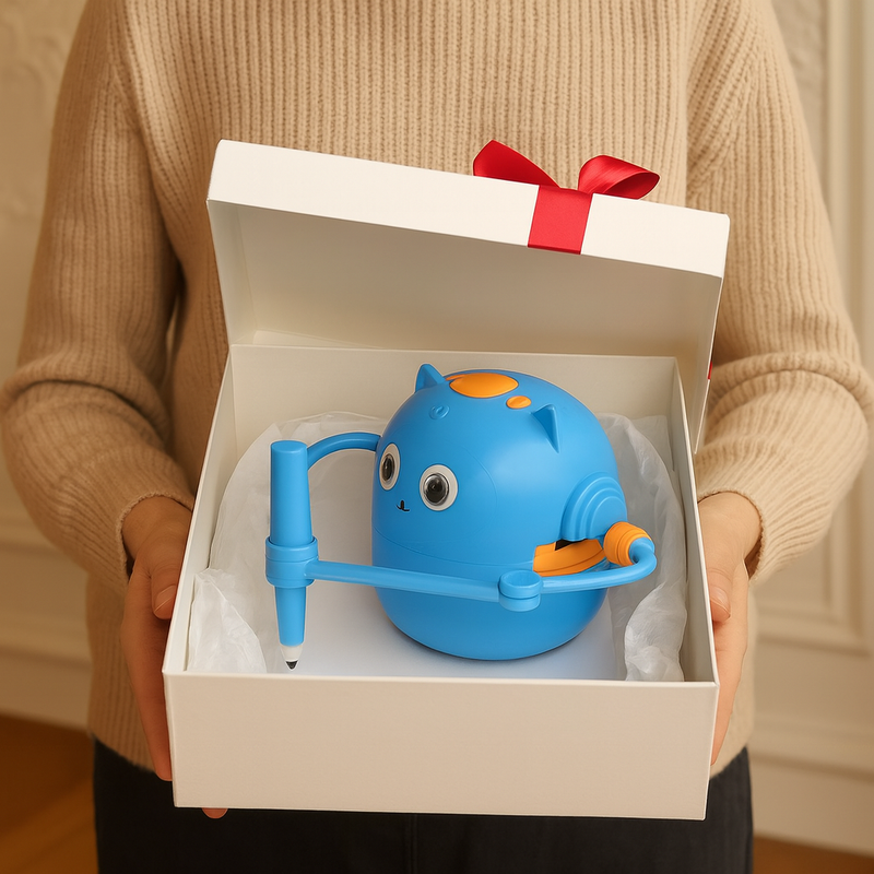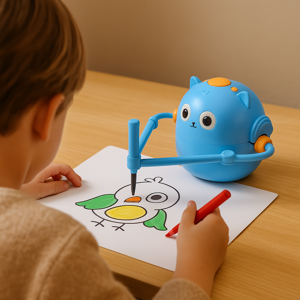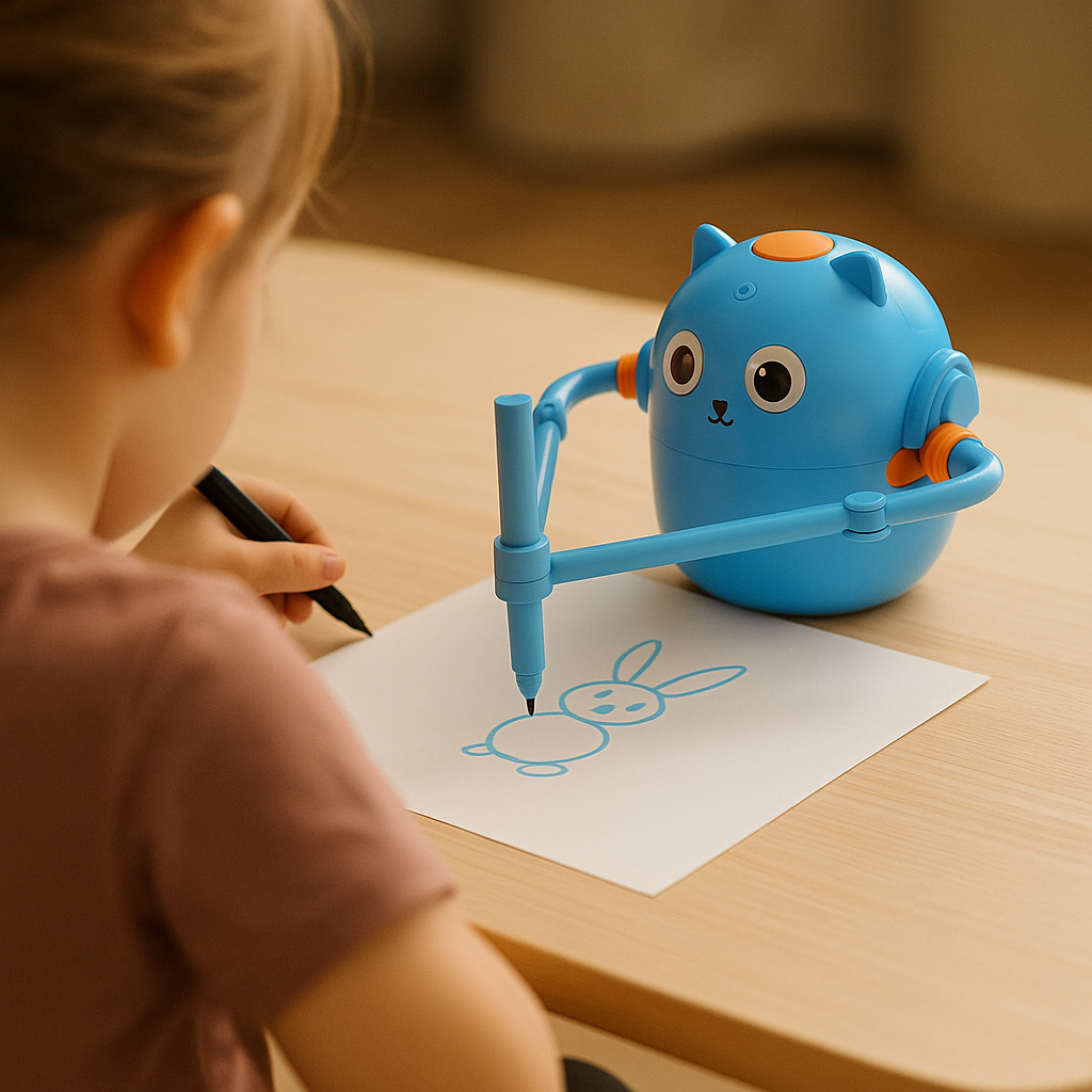 Dzięki prostocie działania, Rysobot wspiera samodzielną naukę i twórcze odkrywanie. Dziecko nie musi prosić o pomoc – samo wkłada kartę, uruchamia robota i obserwuje, jak powstaje rysunek. To doświadczenie buduje jego poczucie sprawczości i pokazuje, że może osiągać efekty własnym wysiłkiem.